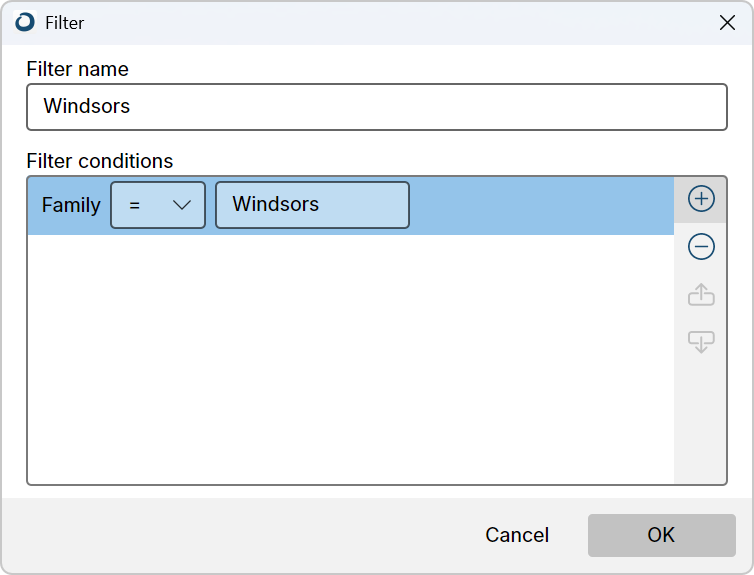 If you need to separate persons of one family (clan), create a filter by a family name and use it in the table, in the tree or in lineage reports: